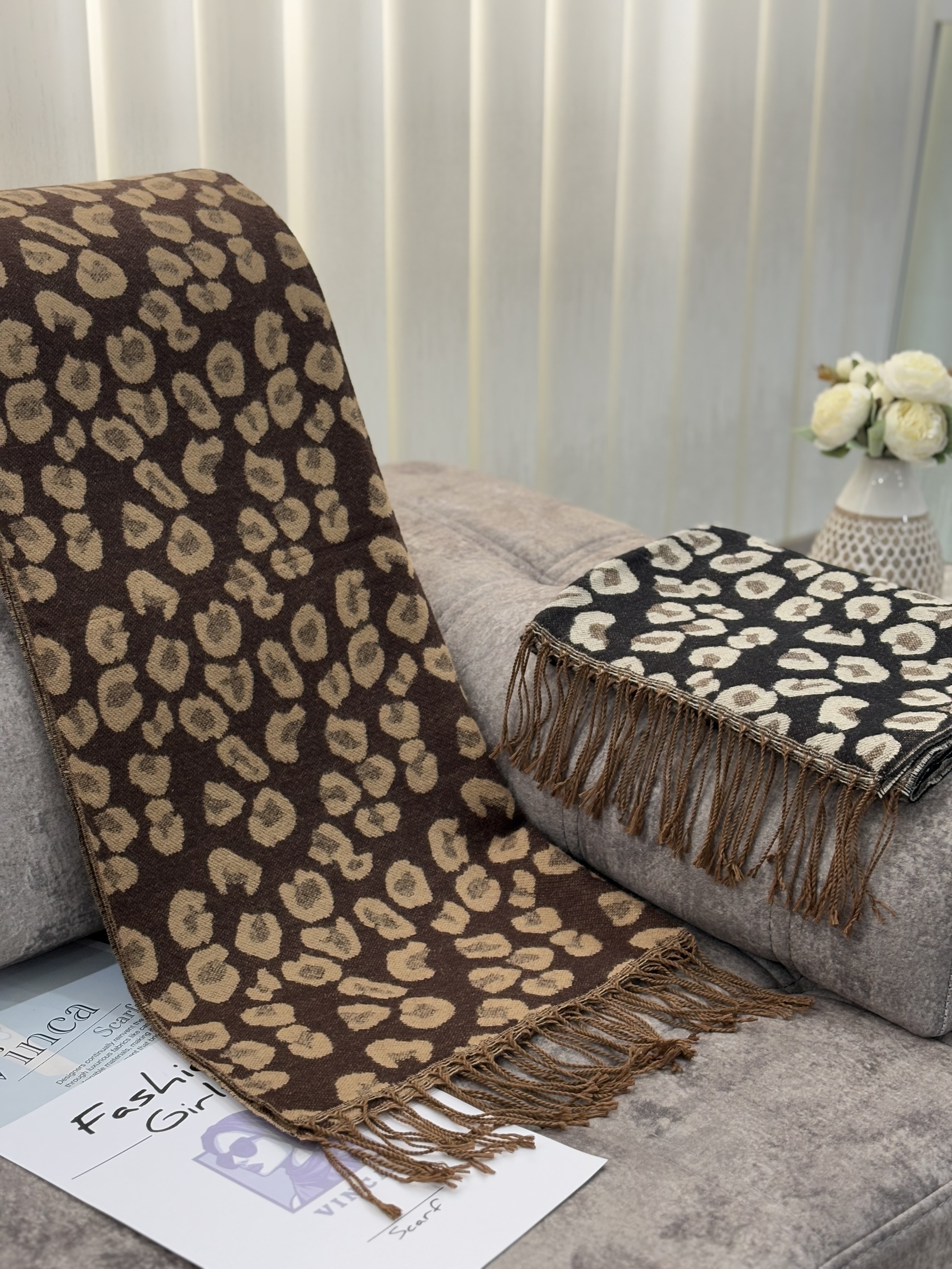 شال موهر زمستانی طرح پلنگی