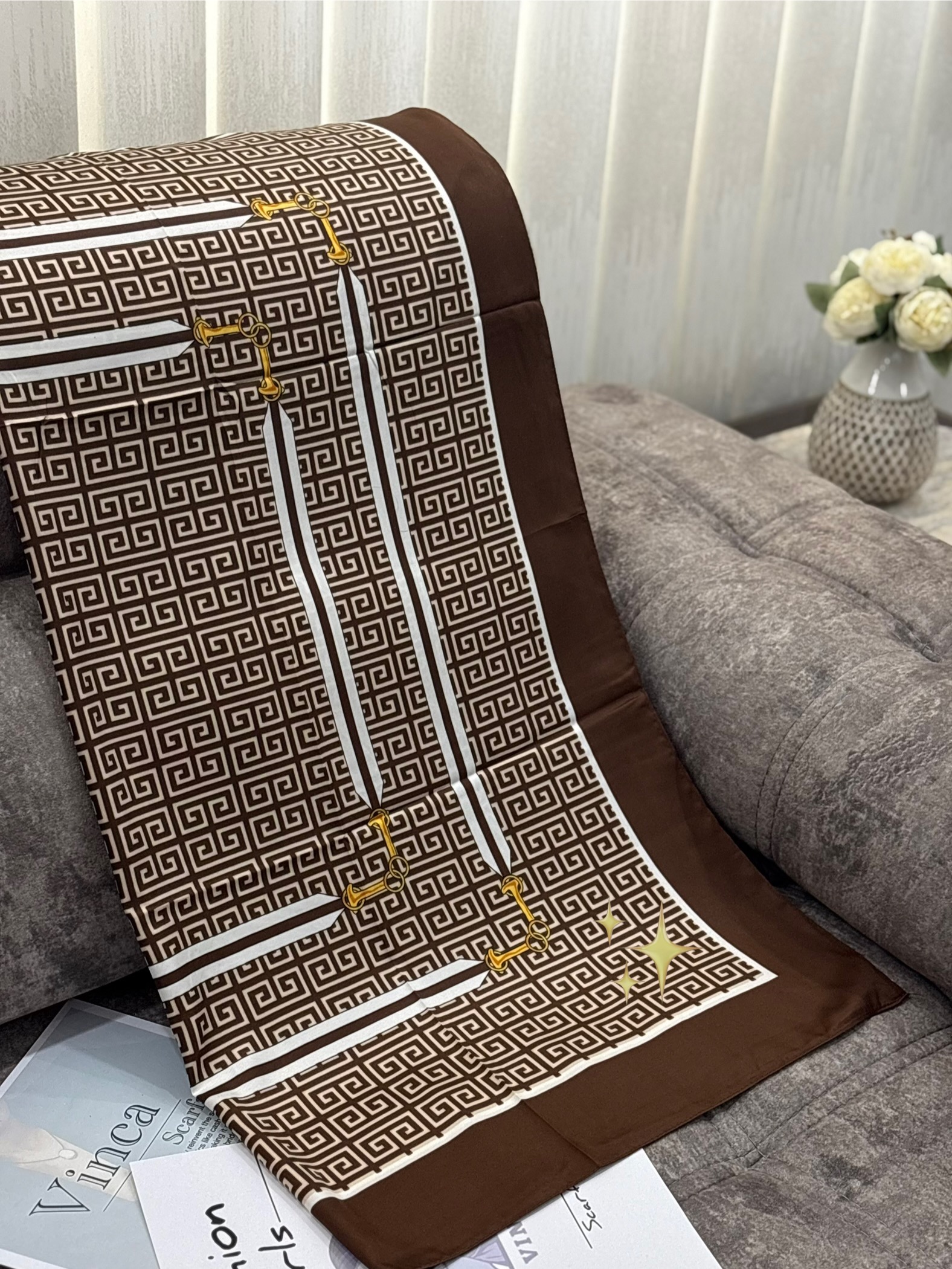 روسری طرح فندی ابریشم توییل قواره ۹۰