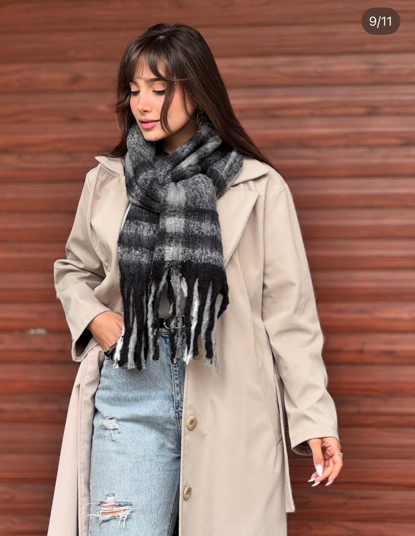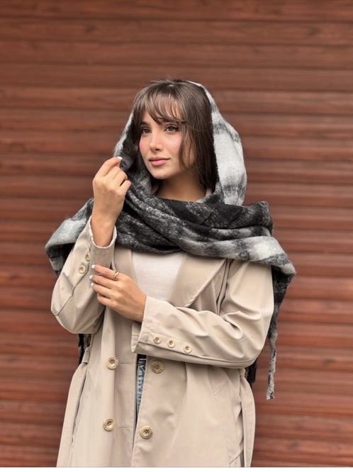 بیگ اسکارف چهارخونه باربری سفید مشکی موهر وارداتی